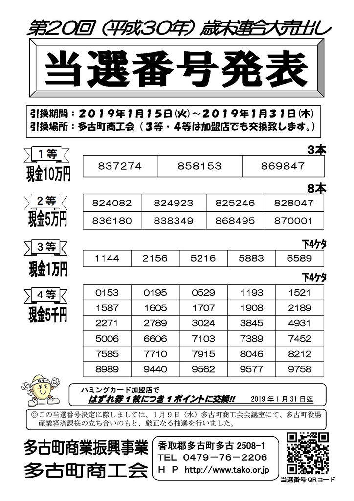 [ 2019/1/10 ] 当選番号発表! 歳末連合大売り出し抽選券